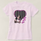' Fünfzigerjahre reden Button oben im Behälter-Anzug auf einem Hintergrund des Schädels und gefüllten des Herzens der gekreuzten Knochen an