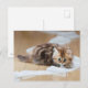 Tierkarte mit einem niedlichen und lustigen Kätzchen, das mit einer Toilettenpapierrolle spielt.