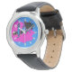 Kinder Edelstahluhr mit schwarzem Lederarmband