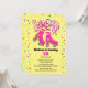 Lass uns Roll, Roller-Skate, Mädchengeburt-Party. Bearbeitbare Alterseinladung. Skate, Sterne, gelber Hintergrund