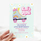 Retro Roller Skaten Geburtstagseinladung mit 70er Schriftart und Farben und Gängen.