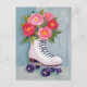 Roller Skate Rose Bouquet Malerei Postkarte