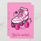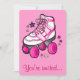 Diese Einladung zu einer Roller-Skaten Geburtstagsparty bietet einen dekorativen rosa Skate.