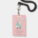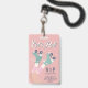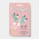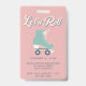 Fun pastellrosa Roller Skaten Geburtstagsfeier Einladung VIP "All Access" Abzeichen und Gastgeschenk für jedes Alter mit "Let's Roll!" in einem weißen Drehbuch, eine Retro-inspiriert Abbildung von hellen aquamarinen Roller-Skate auf einem Mädchen mit rosa gestreiften Röhrensocken und moderne dunkelblaue aquamarine Typografie. Die Vorderseite dient als Abzeichen, das die Mädchen während des Party tragen können. Fügen Sie die Einladungsdetails auf der Rückseite hinzu.