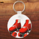 Rollerskates im Retrostil in kräftigen roten Stiefeln mit weißem Detail, Sticken und Schnüren.