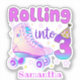 Rolling in 3 - Niedlicher Lila Roller Skate Geburt Aufkleber