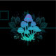 Mysteriöse, biolumineszente, halluzinogene, helle Rollhocker mit Sträuchern aus marschfarbenen Pflanze in der Nacht, dunkel, glänzend. Glühende Pilze. Goblincore, Muschroomcore