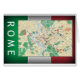 Rom Center map on dark edged flag of Italy Background.