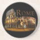 Das unglaubliche römische Kolosseum steht seit fast 2000 Jahren. Man sagt, dass das Kolosseum fallen sollte, ebenso wie Rom. Der südliche Teil wurde bei einem Erdbeben teilweise zerstört. Auf diesem Foto wird die imposante Struktur im Schwarz der Nacht beleuchtet. Dieser Untersetzer aus Sandstein ist vollständig anpassbar.