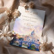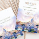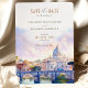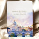 Mit dieser eleganten "Save the Date"-Einladung können Sie Ihre Hochzeit stilvoll mit einer Aquarellillustrierung des Petersdom und der ikonischen Brücke über den Tiber in Rom, Italien, feiern. Weiche Lavendelfarben, pastellrosa und blauer Himmel schaffen ein romantisches und künstlerisches Ambiente, das sich perfekt für eine Hochzeit in Urlaubsort eignet. Die raffinierte Typografie und die malerische Umgebung machen die zeitlose Schönheit Roms zu einem Vorgeschmack auf das unvergessliche Erlebnis, das Sie erwartet. Ideal für Paare, die eine Hochzeit in der Ewigen Stadt planen.