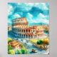 Dieser Kunstdruck zeigt ein Aquarellportrait des Rom-Kolosseums in Italien.