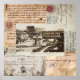 Eine Vintage Postkarte des Kolosseums in Rom ist in dieser hübschen und raffinierten Collage-Kunst enthalten, ebenso die Briefmarke und das römische Postzeichen auf der Rückseite, ein italienisches Manuskript aus den 1200er Jahren, Vintage Kalligraphie-Werbe-Typografie und eine alte 100 Lira-Briefmarke. Digitale Collage von Künstlerin Anita Barnard, Dieses Design ist auch als Kissen, Schürze und Süßigkeiten Glas, mit anderen passenden italienischen Produkten in meinem Zazzle-Geschäft verfügbar.