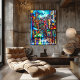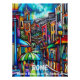 Experimenta la majestuosidad de Roma con este arte colorido que mezcla cubismo y surrealismo. Perfecto para viajeros y aficionados al arte contemporáneo, este paisaje urbano resalta la arquitectura histórica y la vibrante vida de la Ciudad Eterna.