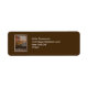 Adressetiketten mit einer Abbildung des römischen Forums im Morgengrauen. Mit einer Oldtimer-Reisewerbung für den Bahnverkehr von Paris nach Rom über Lyon. Set auf dunkelbraunem Hintergrund.