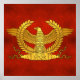 Ein römischer, goldener Adler auf einem Hintergrund antiken Rotes, der im Sieg verwüstet und mit Donnerfetzen versehen wurde. SPQR