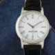 Uhr, Klassische Damenuhr mit schwarzen Lederarmband