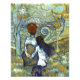 Ein Kunstdesign eines Mädchens und Jungen, das Händchen im Wald hält.