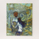 Ein Kunstdesign eines Mädchens und Jungen, das Händchen im Wald hält.