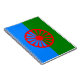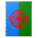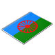 Dieses Design ist mit der romagnolischen Fahne, der internationalen Fahne der Romaner, ausgestattet. Die Fahne besteht aus einem Hintergrund von blau und grün, die Himmel und Erde repräsentieren; sie enthält auch ein 16-sprachiges rotes Chakra, oder ein Karikaturrad, in der Mitte, das die touristische Tradition des rumänischen Volkes darstellt und auch eine Hommage an die Flagge Indiens ist. Die Fahne wurde von den Vertretern verschiedener Roma-Gemeinschaften auf dem ersten Weltkongress der Romani (WRC) 1971 in Orpington gebilligt.