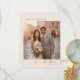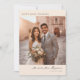 This wedding thank you card features a warm, romantic design with a couple standing against an old stone building bathed in soft sunlight. The color palette includes beige, gold, and soft brown tones, creating a nostalgic and intimate atmosphere. Elegant cursive typography highlights the phrase "LOVE AND THANKS" at the top, while customizable placeholders for names and dates are seamlessly integrated into the layout. The overall style is classic and sophisticated, perfect for commemorating your special day with a timeless touch.