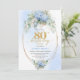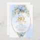 Romantic Blue Hydrangea Gold Floral 80th Birthday Einladung