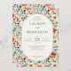 This elegant wedding invitation features a central oval frame surrounded by an intricate floral pattern, creating a romantic and sophisticated atmosphere. The color palette includes soft peach, blush pink, creamy white, and sage green, harmoniously blending to evoke warmth and celebration. The design showcases stylized flowers with detailed petals, arranged in a balanced composition that frames the classic serif typography within the oval. Perfect for a formal wedding, this invitation combines natural beauty with artistic charm, setting the tone for a joyous occasion.
