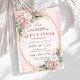 Romantic Blush Pink Floral Greenery Quinceañera Einladung