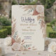 Invite guests to your rustic boho celebration with this elegant botanical aesthetic, featuring an earthy palette of soft pinks, muted greens, and warm tans.This meticulously balanced layout centers on an airy negative space, framed by soft corner arrangements against a solid cream and beige background. The composition highlights detailed printed watercolor illustrations, seamlessly blending dusty pink roses, muted green eucalyptus foliage, and textural tan and caramel brown dried pampas grass plumes. The typography demonstrates a sophisticated stationery hierarchy, utilizing an elegant handwritten calligraphy script paired with a highly legible, refined serif font.This is a flat printed image with a printed watercolor effect, not actual raised material.