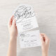 This romantic calligraphy the wedding of all in one invitation is perfect for a simple wedding. The modern classic design features fancy swirls and whimsical flourishes with gorgeous elegant hand lettered typography. Hand write your guest addresses on the back of the folded invitation, or purchase coordinating guest address label stickers (sold separately).