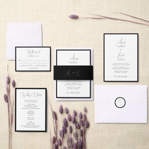 Enhance your wedding invitations with our Romantic Classic White & Black Script Wedding Invitation Belly Band, featuring elegant black script typography on a crisp white background that adds a timeless, romantic touch while beautifully tying together your invitation suite with refined sophistication.
