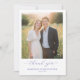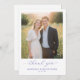 This thank you card features a warm, romantic photograph of a couple standing together in a sunlit field, evoking feelings of love and gratitude. The design uses a soft color palette with gentle hues that complement the serene outdoor setting. Elegant cursive typography adds a touch of sophistication to the heartfelt message, making it perfect for expressing thanks after a wedding or special event. The overall style is classic and timeless, ideal for those looking to convey appreciation with a personal and intimate touch.