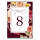 Romantic Deep Burgundy Floral Bridal Shower Tischnummer