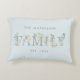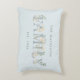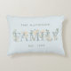 Romantic Dusty Blue Floral Family Monogram Custom Accent Pillow with Elegant Botanical Cream Roses and Refined Typography.