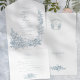 This romantic and classic design features a lush border of elegant line drawn roses, mixed flowers, lily-of-the valley, foliage and vines in a timeless dusty blue color. Also included are editable text fields, custom calligraphy text, complementary floral graphics and a stunning floral crest with space for your initials. This versatile all-in-one format also features a tearaway RSVP card.