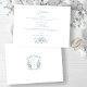 This romantic and classic design features a delicate ornament of elegant line drawn roses, mixed flowers, lily-of-the valley, foliage and vines in a timeless dusty blue color. Also included are editable text fields, custom calligraphy text and on the back, a stunning floral crest with space for your initials.