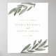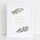 Elegantes botanisches Hochzeitswillkommensschild mit von Hand gezeichnet Olivenzweigen, die Ihre Hochzeitsdetails abstecken. Personalisieren Sie mit Ihrer Zeremonie Informationen in der Natur farbene Typografie.