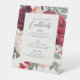 Beautiful watercolor bridal bouquet, with flowers in rich shades of red and pink, trimmed with silver green botanicals... and your bar menu in lovely fonts.