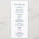 Dieses romantische Hochzeitsprogramm im Garten eignet sich perfekt für eine elegante Hochzeit. Das Design ist mit einem farbenfrohen Blumenstrauß in Aquarellfarben auf einem hellrosa Hintergrund mit marineblau-blauem Text gestaltet. Sie können die Farbe des Hintergrunds ändern, um Ihre Hochzeitsfarben anzupassen, indem Sie auf den Button "Anpassen" klicken. Geben Sie den Namen der Braut und des Bräutigams, das Datum und den Ort der Hochzeit, Dankeschön-Nachricht, Dienstordnung, Brautparty und ein optionales "in Loving Memorial" ein.