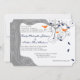 Rustikale Folksy Hütte Chic Farmhouse Navy, Gray und Orange Romantische Eichenbaum Whimsical Wirbel Zweig mit Initialen in der Trunk Romantic Love Birds Hochzeitseinladungen. Orangefarbene Lila und warme graue Taupe Tree Swirt Hochzeit