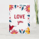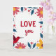 This design shows the words “LOVE you” in the center, with “LOVE” in large red uppercase letters and “you” in a smaller flowing red letter style right beside it. Around the message, flowers and leaves form a frame that reaches in from the edges. You’ll see big pink and yellow blooms, tiny red buds, and deep teal leaves spreading across the border. A small red hummingbird sits near the lower-left area, angled as if it just paused mid-flight. Little red and pink dots are scattered around like bits of confetti or falling petals. The white background makes the reds, pinks, yellows, and teal stand out and keeps the focus on the message. It feels meaningful to give because it says what you might not always say out loud, in a simple way that still feels close and caring 🥰❤️. Hope it helps you share Valentine’s Day feelings with someone you care about.