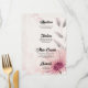 Add a touch of artistic elegance to your wedding reception tables with this beautiful floral menu card. The design features a large, hand-painted watercolor flower in soft shades of blush pink and mauve, accented with grey botanical leaves and a subtle pink watercolor splash background.