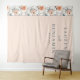 This elegant wedding backdrop features a soft peach background with a vertical floral border of large roses in shades of peach and cream, creating a romantic frame. The design includes customizable text in a clean serif font, with the word "and" styled in cursive for added elegance. The overall style is classic and sophisticated, perfect for formal occasions, with a warm and inviting mood enhanced by the harmonious color palette and gentle floral accents.