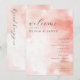 This wedding program features a soft, watercolor background in hues of pink and peach, creating an ethereal and romantic atmosphere. The layout is vertically oriented with centrally aligned text, using elegant cursive for the welcoming message and bold serif fonts for the names, ensuring a sophisticated look. A clean sans-serif typeface lists the ceremony schedule, maintaining clarity and readability. The minimalist design focuses on elegance through simplicity, making it perfect for couples seeking a warm and inviting aesthetic for their special day.