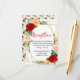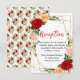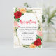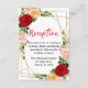 This fun and whimsical wedding reception enclosure card features watercolor red, pink and orange roses with foliage on a gold geometric frame. The text combines handwritten script and serif fonts for a stylish and modern look. This is perfect for a spring or summer rustic wedding.