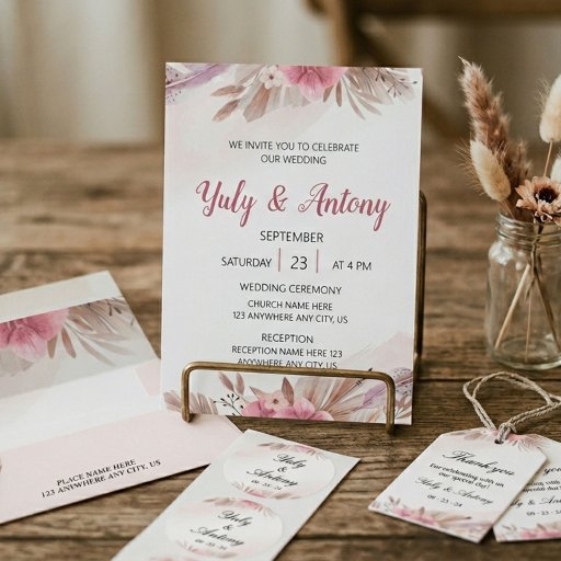 Announce your big day with this elegant Boho Chic Save the Date card. Featuring a customizable photo placeholder on the front and romantic champagne and dusty rose florals with pampas grass on the back. This modern botanical design is the perfect way to set the tone for your wedding. Easy to personalize with your names, date, and location.