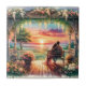 This dreamy illustration captures a serene and romantic moment as a couple sits together on a wooden bench beneath a flower-draped pergola, watching the sun melt into a radiant coastal horizon. The scene is bathed in warm sunset hues—corals, golds, and soft purples—that reflect a tranquil, folk-inspired countryside charm. Lush blooms in shades of blush, peach, and cream surround the porch, adding to the cottagecore atmosphere. Delicate architectural details, gentle lighting, and the embracing silhouettes create an aesthetic that’s both nostalgic and heartwarming. Ideal for evoking peaceful, sentimental moods, this artwork blends romantic realism with a touch of soft whimsy. AI generated artwork.