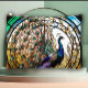 This makeup purse has a beautiful Peacock on it with it's lovely tail raised. The image is in a stained glass window style. Inspired by the flowing beauty of Art Nouveau, this peacock purse is more than just an accessory – it’s a statement piece.