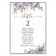 Romantic Violet Flower Table Seating Chart Cards Tischnummer