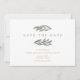 Elegant botanisch speichern Sie die Datumskarten mit wunderschönen Aquarellfarben-Blätter. Passen Sie mit Ihrem Hochzeitstag, Namen, Ort und Details wie Hochzeitswebsite oder Einladungsinfo, alles in schicker Typografie auf. Die Rückseite der Karten setzt die weiche, natürliche Farbe der Vorderseite fort.