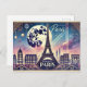 Hier ist die Reise-Postkarte im Aquarellstil mit dem Eiffelturm im schicken Art-Deco-Stil, jetzt mit flüssigen Pinselstrichen bemalt. 🇫 🇷 🌙 Der Hintergrund zeigt eine romantische Mondnacht mit sanften Pastelltönen in tiefblauen, lila und goldenen Tönen und leuchtenden Lichtern der Stadt. Der Text "Romantic Paris" ist in elegantem, fließendem Drehbuch mit einer Aquarelltextur. ✨ Das Design besticht durch stilvolle Rahmen, glamouröse goldene Akzente und wirbelnde Muster, die ein traumhaftes, elegantes Reiseerlebnis schaffen.